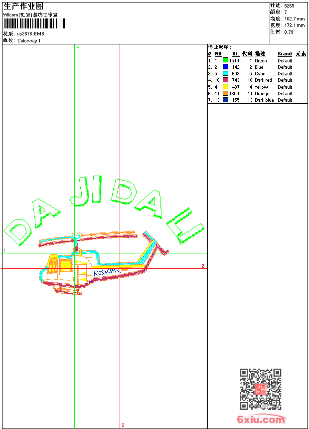 - 版带文件需绣花软件方可打开,可配色打印导出各种格式或直接上机绣。如无绣花软件可下载1:1模拟效果图。