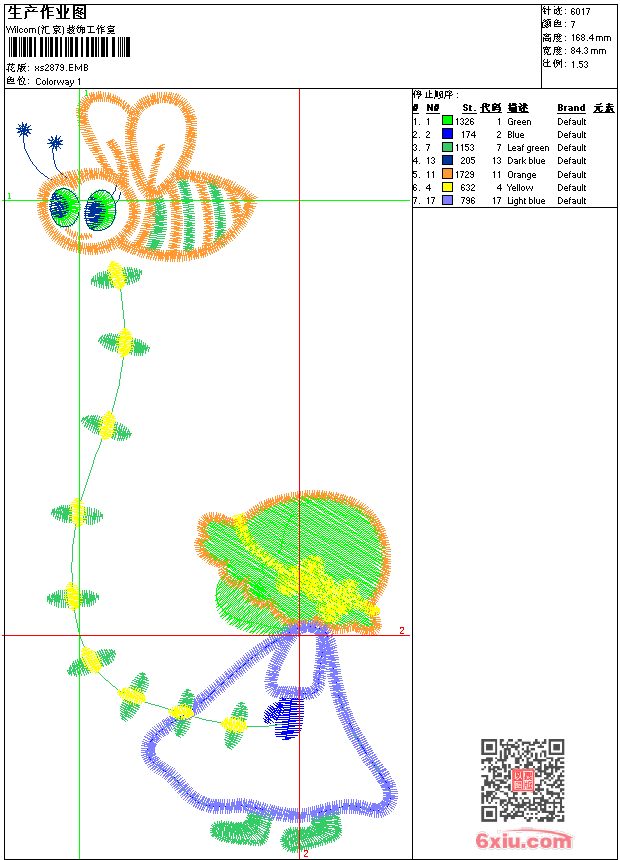- 版带文件需绣花软件方可打开,可配色打印导出各种格式或直接上机绣。如无绣花软件可下载1:1模拟效果图。