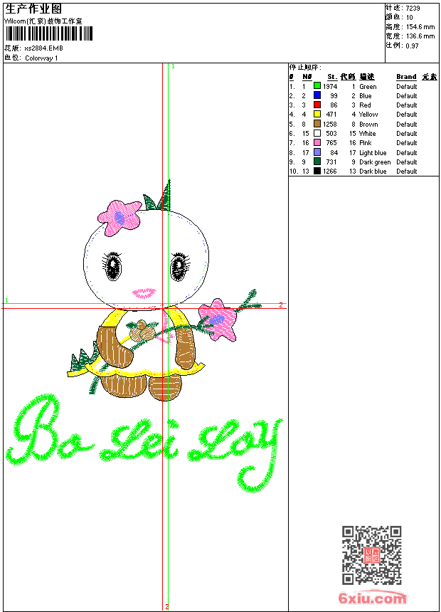 - 版带文件需绣花软件方可打开,可配色打印导出各种格式或直接上机绣。如无绣花软件可下载1:1模拟效果图。