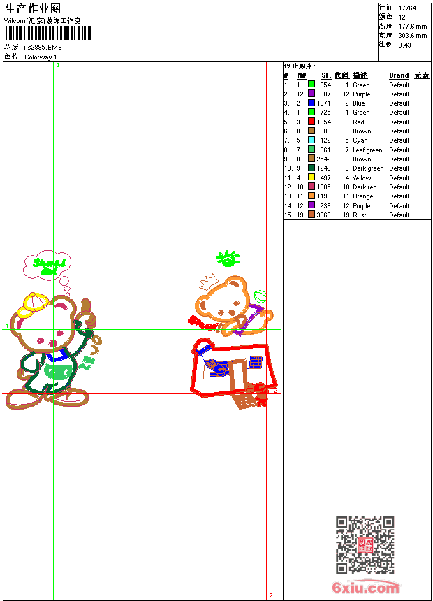 - 版带文件需绣花软件方可打开,可配色打印导出各种格式或直接上机绣。如无绣花软件可下载1:1模拟效果图。