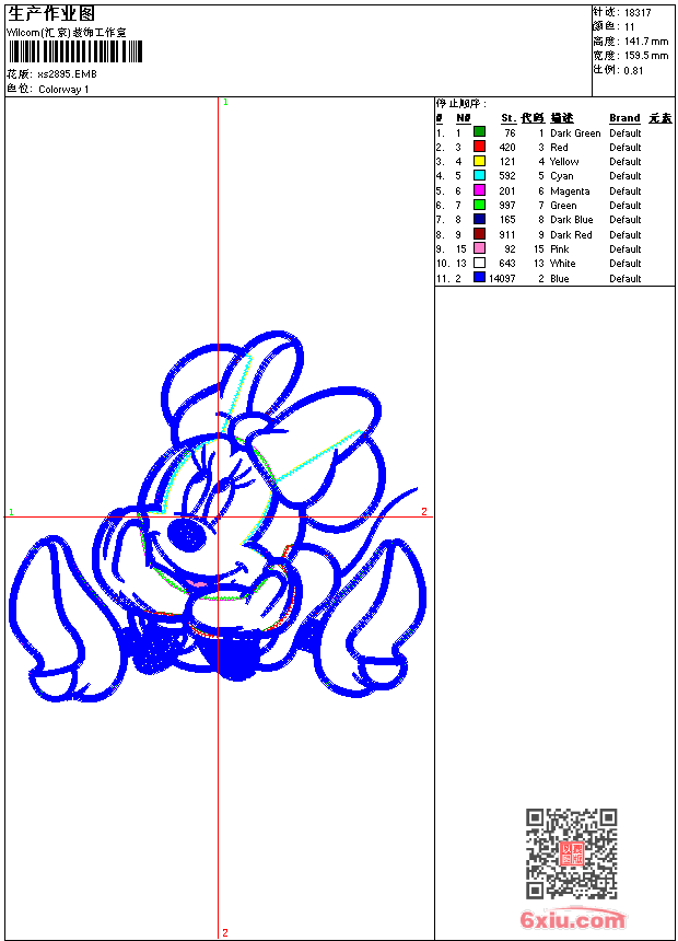 - 版带文件需绣花软件方可打开,可配色打印导出各种格式或直接上机绣。如无绣花软件可下载1:1模拟效果图。