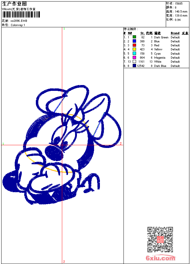 - 版带文件需绣花软件方可打开,可配色打印导出各种格式或直接上机绣。如无绣花软件可下载1:1模拟效果图。