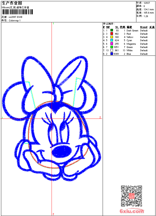 - 版带文件需绣花软件方可打开,可配色打印导出各种格式或直接上机绣。如无绣花软件可下载1:1模拟效果图。