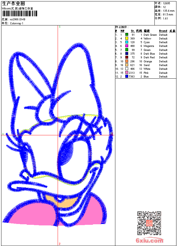 - 版带文件需绣花软件方可打开,可配色打印导出各种格式或直接上机绣。如无绣花软件可下载1:1模拟效果图。
