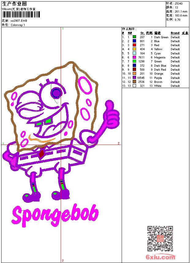 - emb花版参数: 大小:115.00 KB / 尺寸:184*261[毫米] / 针数:25343针 / 线色:13 / 格式:emb / 版本:9