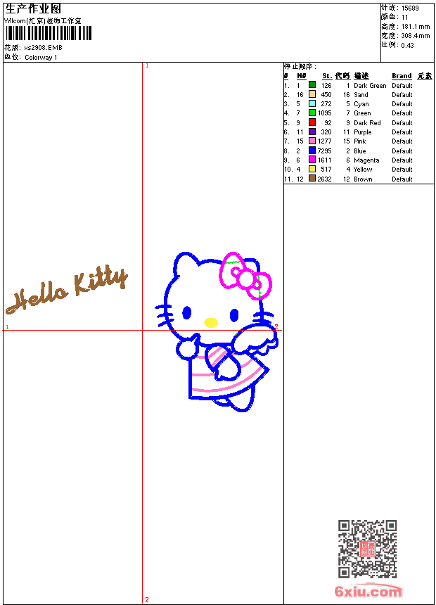 - 版带文件需绣花软件方可打开,可配色打印导出各种格式或直接上机绣。如无绣花软件可下载1:1模拟效果图。