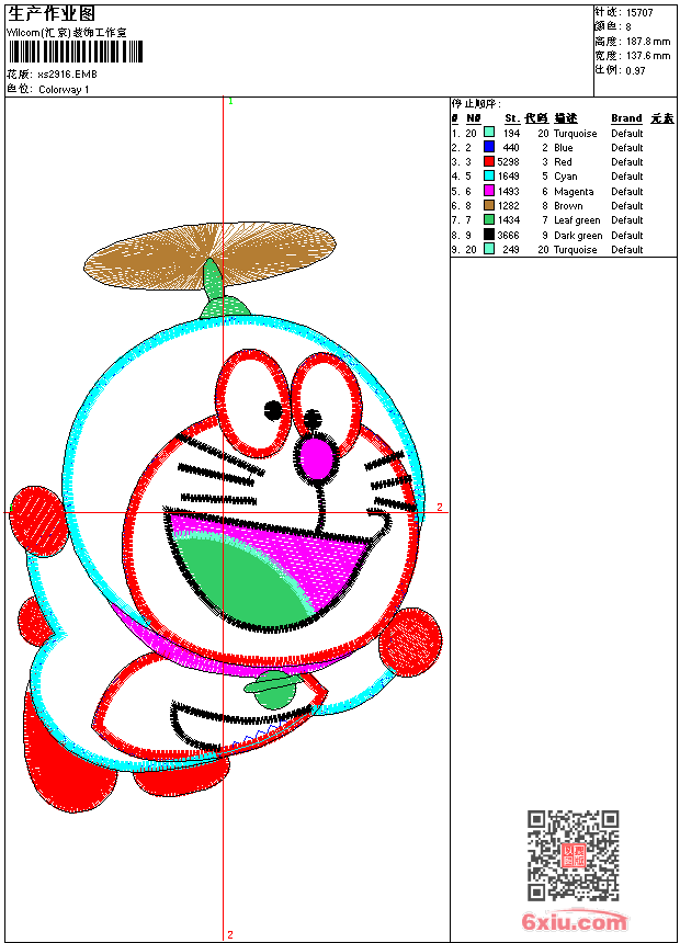 - emb花版参数: 大小:99.00 KB / 尺寸:138*188[毫米] / 针数:15707针 / 线色:8 / 格式:emb / 版本:9