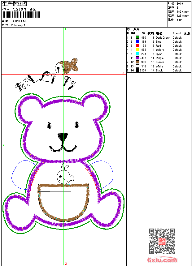- 版带文件需绣花软件方可打开,可配色打印导出各种格式或直接上机绣。如无绣花软件可下载1:1模拟效果图。