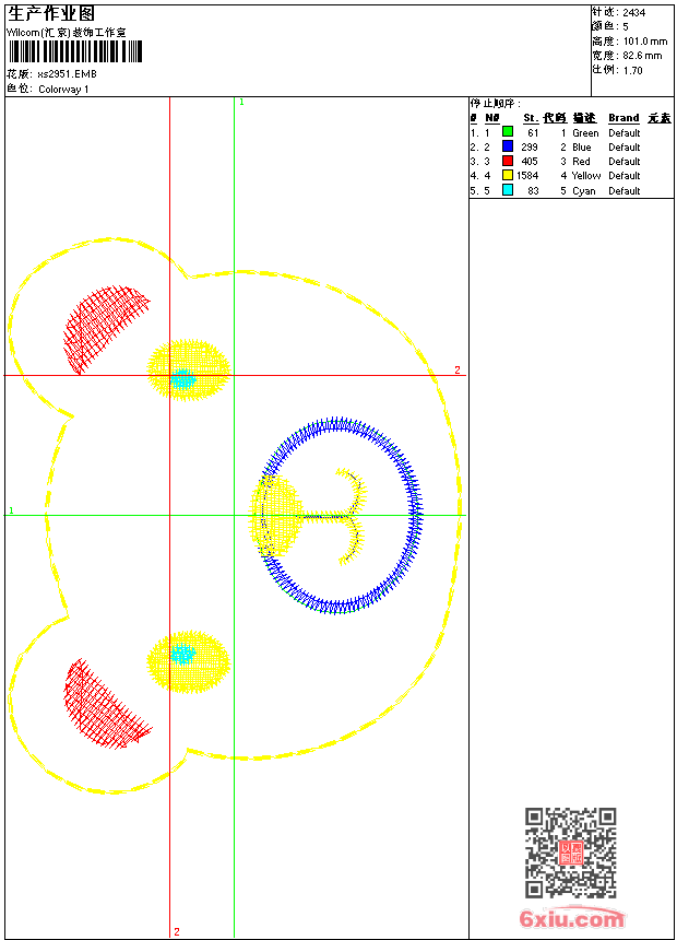 - emb花版参数: 大小:31.00 KB / 尺寸:83*101[毫米] / 针数:2434针 / 线色:5 / 格式:emb / 版本:9