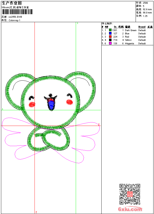 - 版带文件需绣花软件方可打开,可配色打印导出各种格式或直接上机绣。如无绣花软件可下载1:1模拟效果图。