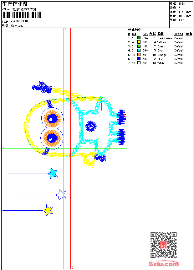 - 版带文件需绣花软件方可打开,可配色打印导出各种格式或直接上机绣。如无绣花软件可下载1:1模拟效果图。