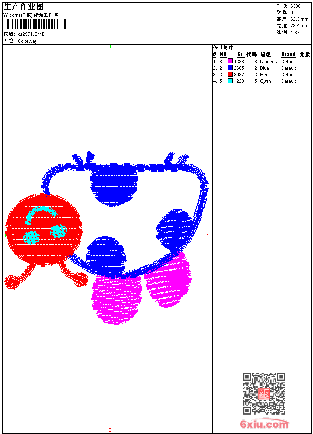 - emb花版参数: 大小:40.00 KB / 尺寸:73*62[毫米] / 针数:6332针 / 线色:4 / 格式:emb / 版本:9