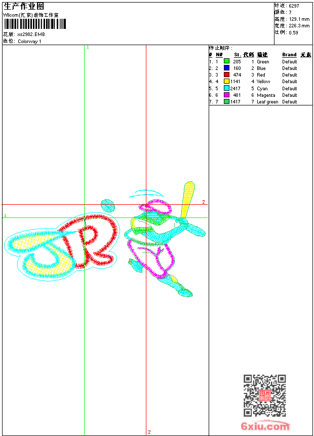 - 版带文件需绣花软件方可打开,可配色打印导出各种格式或直接上机绣。如无绣花软件可下载1:1模拟效果图。