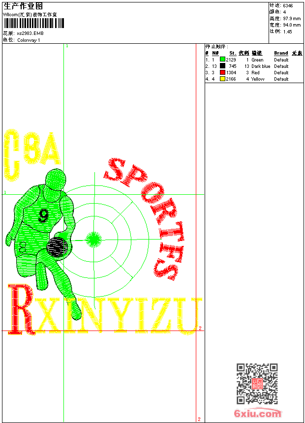 - emb花版参数: 大小:49.00 KB / 尺寸:94*98[毫米] / 针数:6345针 / 线色:4 / 格式:emb / 版本:9