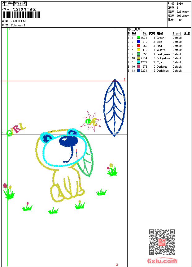 - 版带文件需绣花软件方可打开,可配色打印导出各种格式或直接上机绣。如无绣花软件可下载1:1模拟效果图。