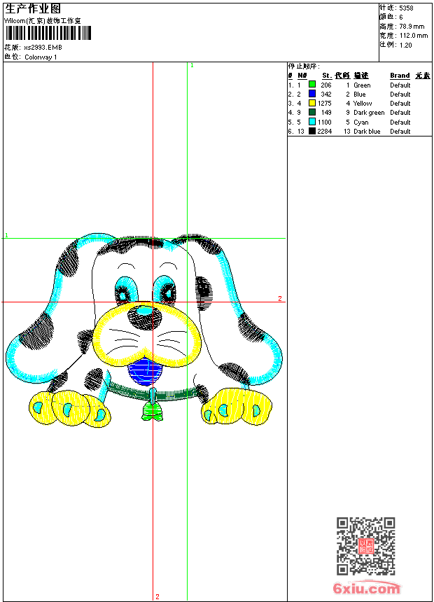 - emb花版参数: 大小:52.50 KB / 尺寸:112*79[毫米] / 针数:5358针 / 线色:6 / 格式:emb / 版本:9