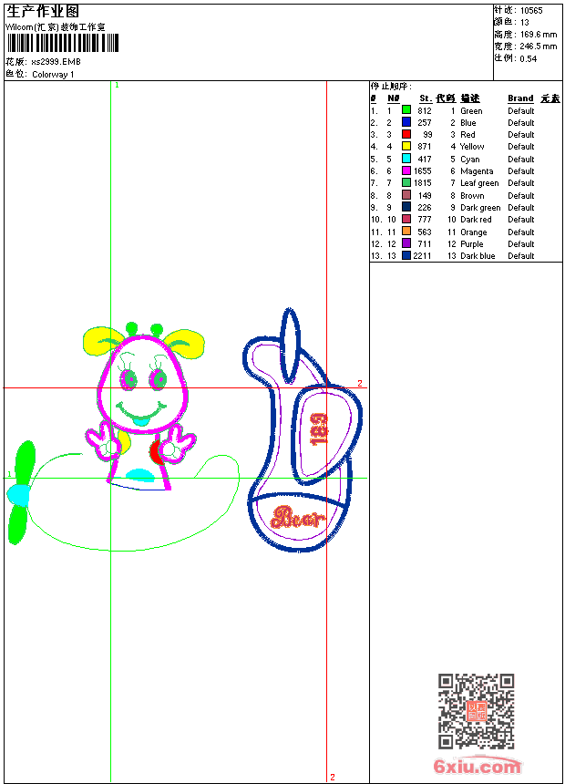 - 版带文件需绣花软件方可打开,可配色打印导出各种格式或直接上机绣。如无绣花软件可下载1:1模拟效果图。