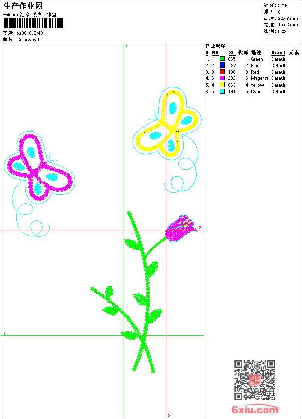 - emb花版参数: 大小:51.00 KB / 尺寸:155*226[毫米] / 针数:5216针 / 线色:6 / 格式:emb / 版本:9