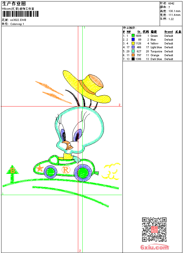 - 版带文件需绣花软件方可打开,可配色打印导出各种格式或直接上机绣。如无绣花软件可下载1:1模拟效果图。