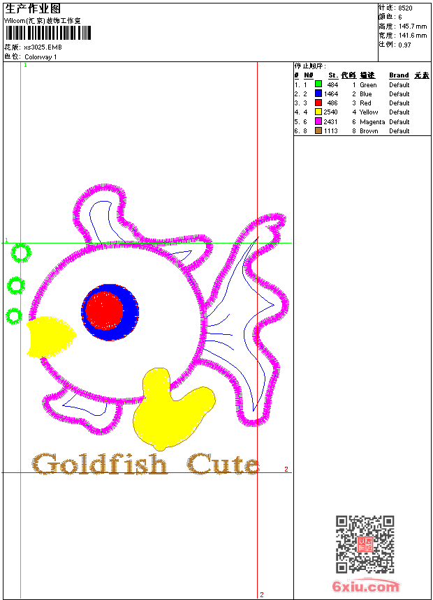 - emb花版参数: 大小:68.00 KB / 尺寸:142*146[毫米] / 针数:8529针 / 线色:6 / 格式:emb / 版本:9