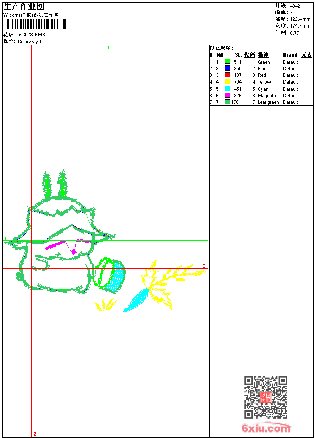 - 版带文件需绣花软件方可打开,可配色打印导出各种格式或直接上机绣。如无绣花软件可下载1:1模拟效果图。