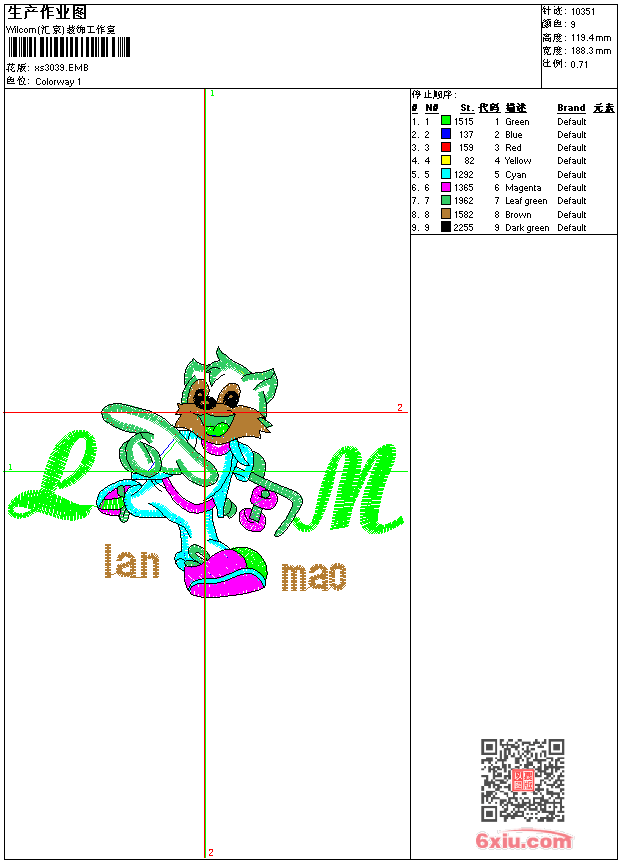 - 版带文件需绣花软件方可打开,可配色打印导出各种格式或直接上机绣。如无绣花软件可下载1:1模拟效果图。