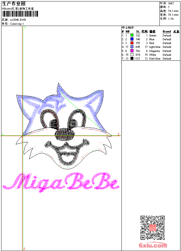 - 版带文件需绣花软件方可打开,可配色打印导出各种格式或直接上机绣。如无绣花软件可下载1:1模拟效果图。