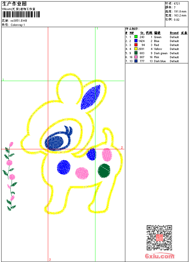 - emb花版参数: 大小:54.00 KB / 尺寸:163*192[毫米] / 针数:6721针 / 线色:7 / 格式:emb / 版本:9