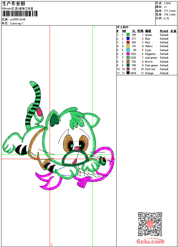 - 版带文件需绣花软件方可打开,可配色打印导出各种格式或直接上机绣。如无绣花软件可下载1:1模拟效果图。