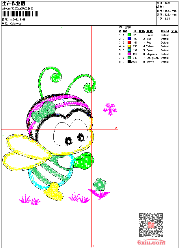 - 版带文件需绣花软件方可打开,可配色打印导出各种格式或直接上机绣。如无绣花软件可下载1:1模拟效果图。