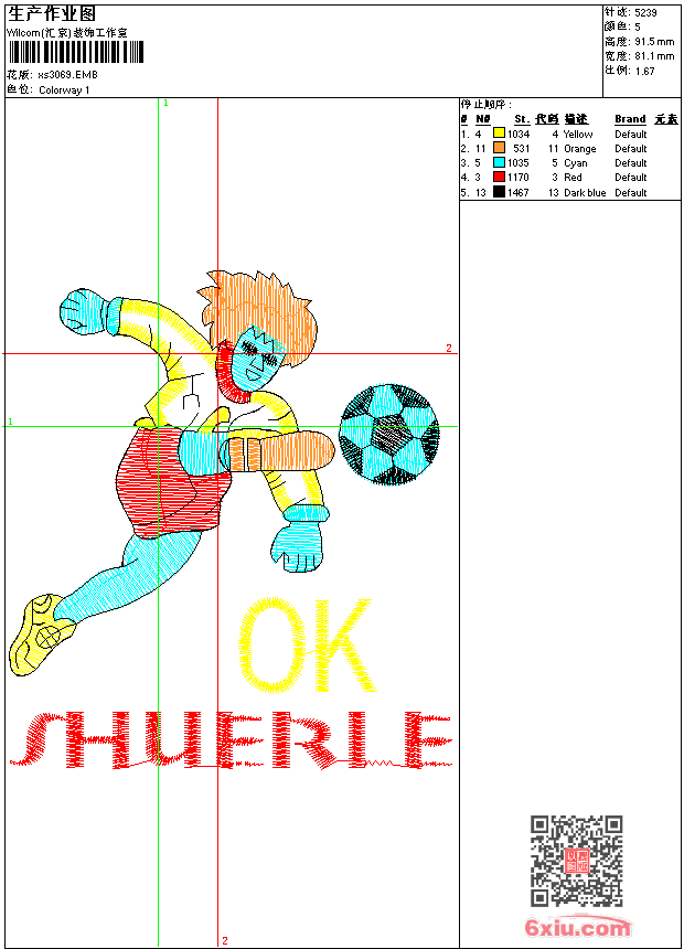 - emb花版参数: 大小:49.50 KB / 尺寸:81*91[毫米] / 针数:5239针 / 线色:5 / 格式:emb / 版本:9