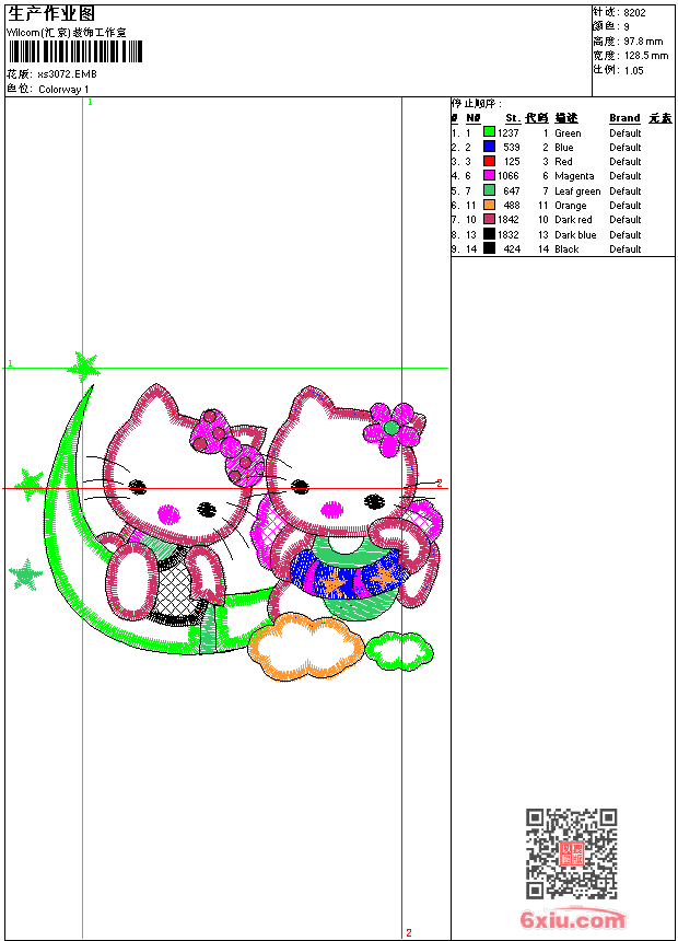 - 版带文件需绣花软件方可打开,可配色打印导出各种格式或直接上机绣。如无绣花软件可下载1:1模拟效果图。