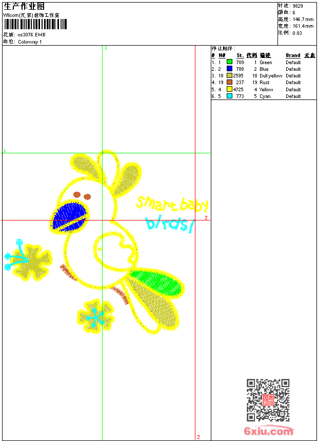 - emb花版参数: 大小:86.00 KB / 尺寸:161*147[毫米] / 针数:9829针 / 线色:6 / 格式:emb / 版本:9