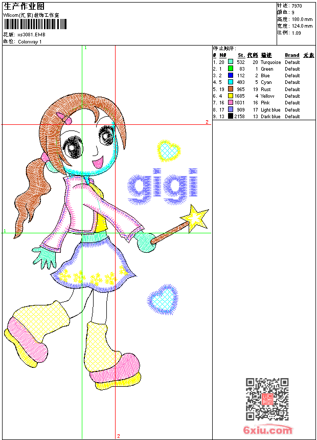 - 版带文件需绣花软件方可打开,可配色打印导出各种格式或直接上机绣。如无绣花软件可下载1:1模拟效果图。