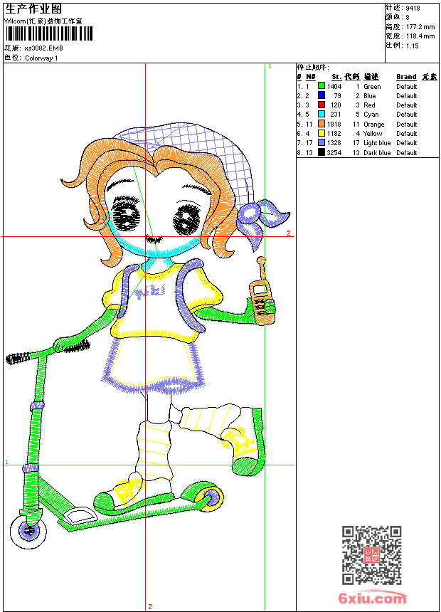 - 版带文件需绣花软件方可打开,可配色打印导出各种格式或直接上机绣。如无绣花软件可下载1:1模拟效果图。