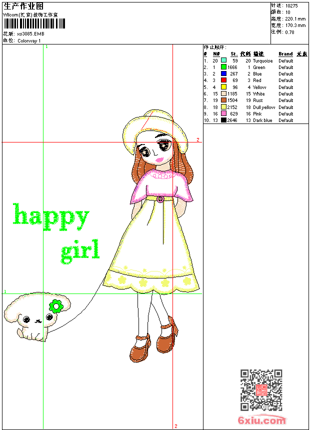 - 版带文件需绣花软件方可打开,可配色打印导出各种格式或直接上机绣。如无绣花软件可下载1:1模拟效果图。