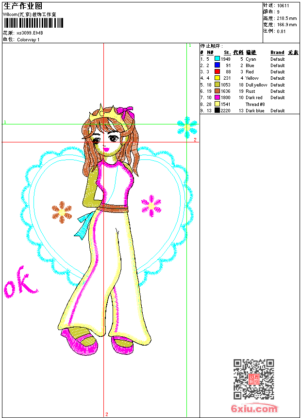 - 版带文件需绣花软件方可打开,可配色打印导出各种格式或直接上机绣。如无绣花软件可下载1:1模拟效果图。
