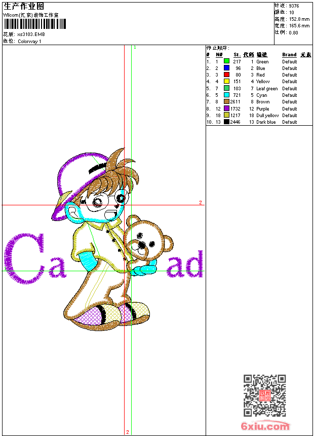 - emb花版参数: 大小:85.00 KB / 尺寸:166*153[毫米] / 针数:9376针 / 线色:10 / 格式:emb / 版本:9