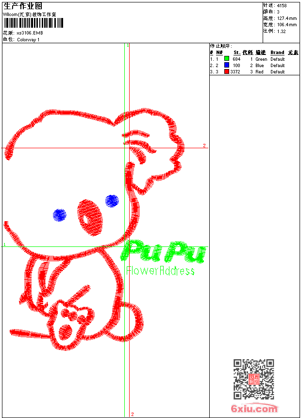 - 版带文件需绣花软件方可打开,可配色打印导出各种格式或直接上机绣。如无绣花软件可下载1:1模拟效果图。