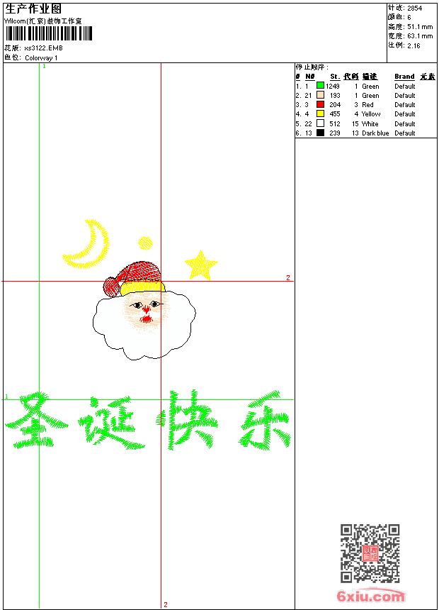 - emb花版参数: 大小:37.00 KB / 尺寸:63*51[毫米] / 针数:2854针 / 线色:6 / 格式:emb / 版本:9