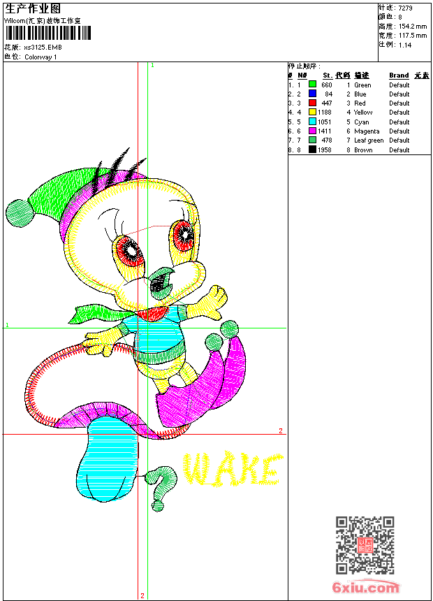 - 版带文件需绣花软件方可打开,可配色打印导出各种格式或直接上机绣。如无绣花软件可下载1:1模拟效果图。