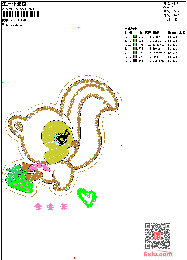 - 版带文件需绣花软件方可打开,可配色打印导出各种格式或直接上机绣。如无绣花软件可下载1:1模拟效果图。