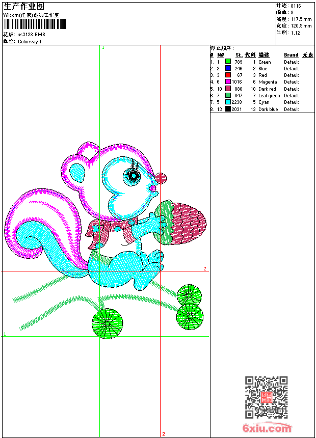 - 版带文件需绣花软件方可打开,可配色打印导出各种格式或直接上机绣。如无绣花软件可下载1:1模拟效果图。