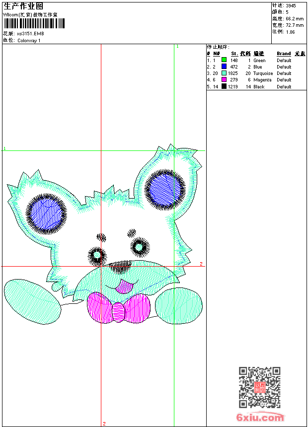 - 版带文件需绣花软件方可打开,可配色打印导出各种格式或直接上机绣。如无绣花软件可下载1:1模拟效果图。