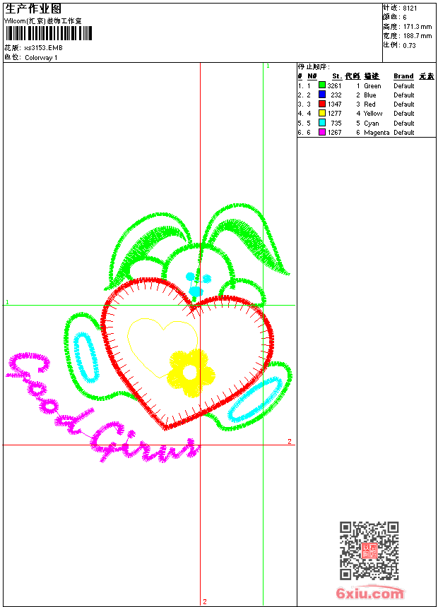 - 版带文件需绣花软件方可打开,可配色打印导出各种格式或直接上机绣。如无绣花软件可下载1:1模拟效果图。