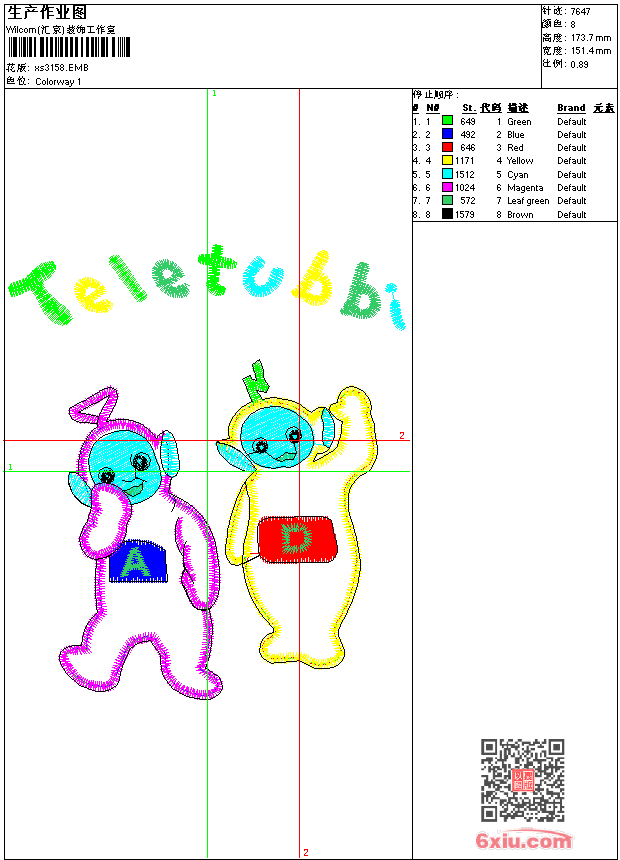 - 版带文件需绣花软件方可打开,可配色打印导出各种格式或直接上机绣。如无绣花软件可下载1:1模拟效果图。