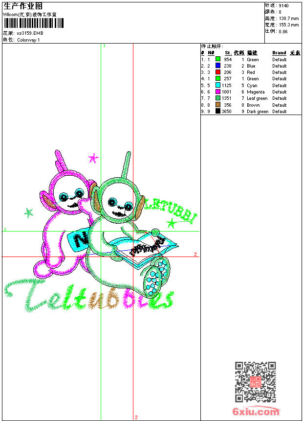 - 版带文件需绣花软件方可打开,可配色打印导出各种格式或直接上机绣。如无绣花软件可下载1:1模拟效果图。