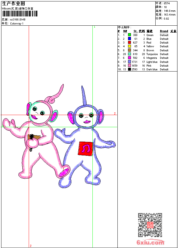 - 版带文件需绣花软件方可打开,可配色打印导出各种格式或直接上机绣。如无绣花软件可下载1:1模拟效果图。
