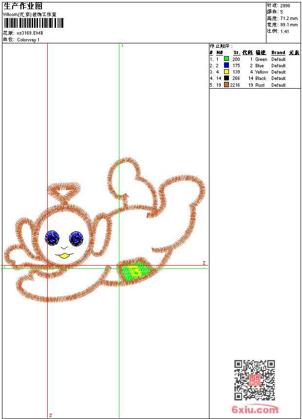 - 版带文件需绣花软件方可打开,可配色打印导出各种格式或直接上机绣。如无绣花软件可下载1:1模拟效果图。