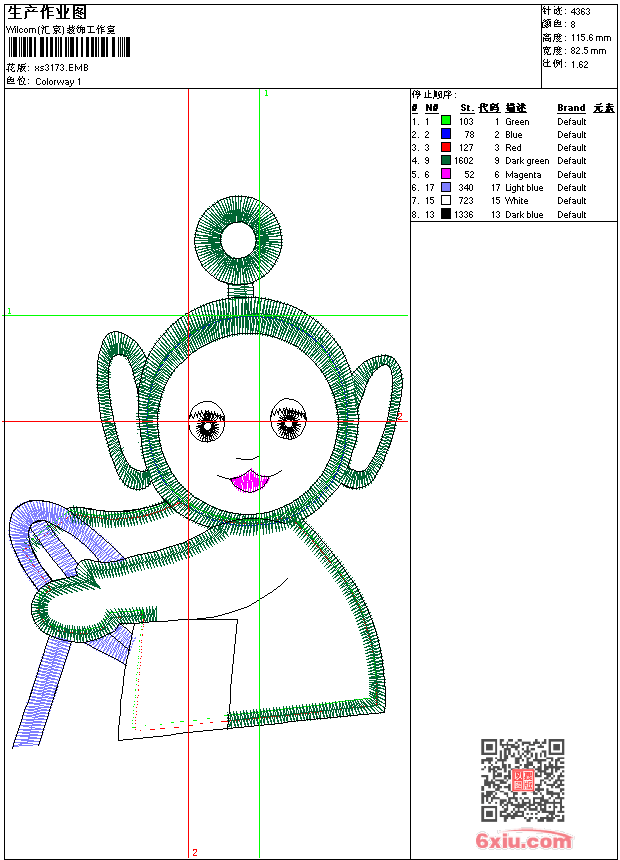 - 版带文件需绣花软件方可打开,可配色打印导出各种格式或直接上机绣。如无绣花软件可下载1:1模拟效果图。